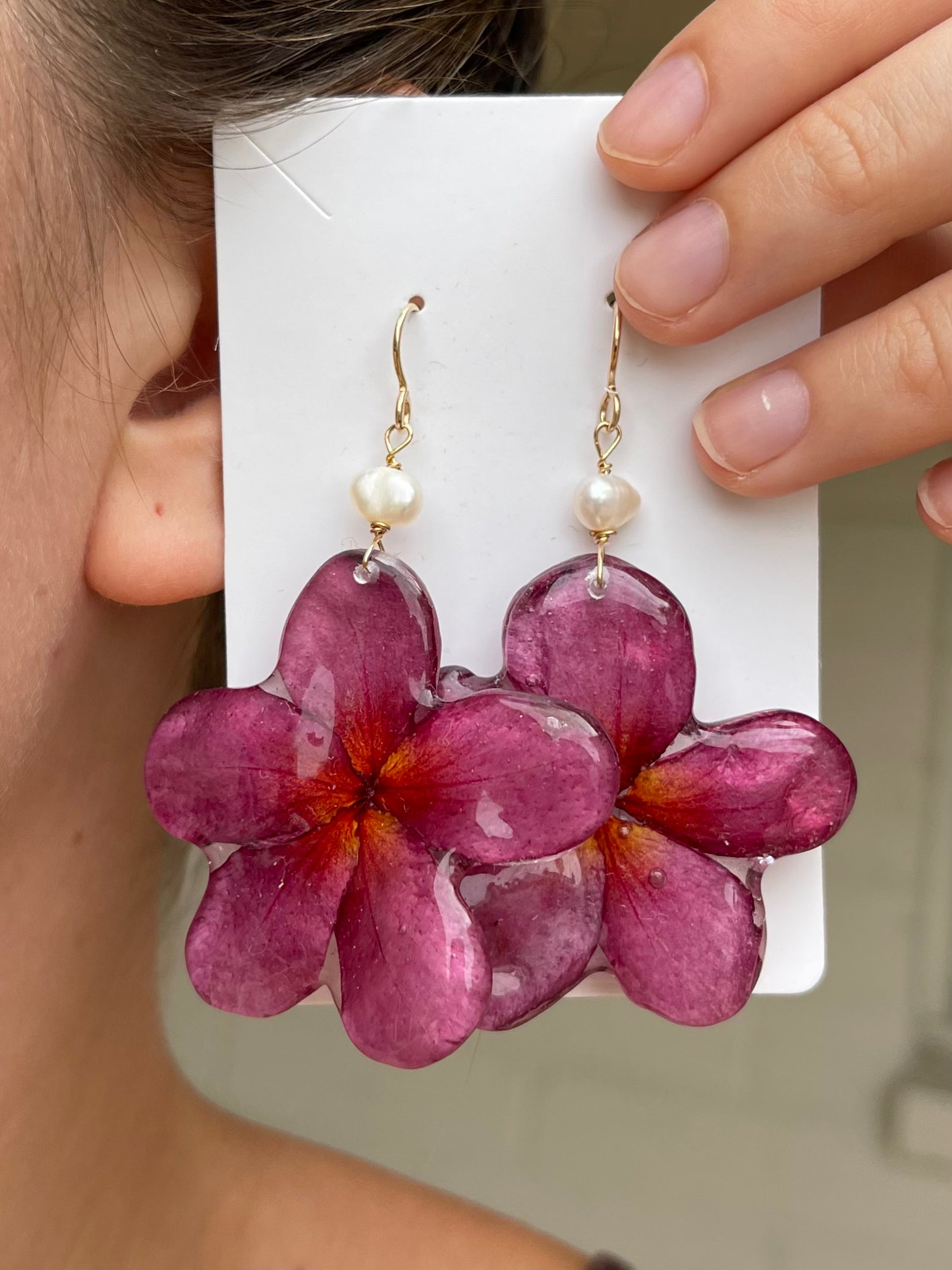 Mini 1.5”-2" plumeria embossed in wearable resin using 14k gold-filled or sterling silver jewelry.