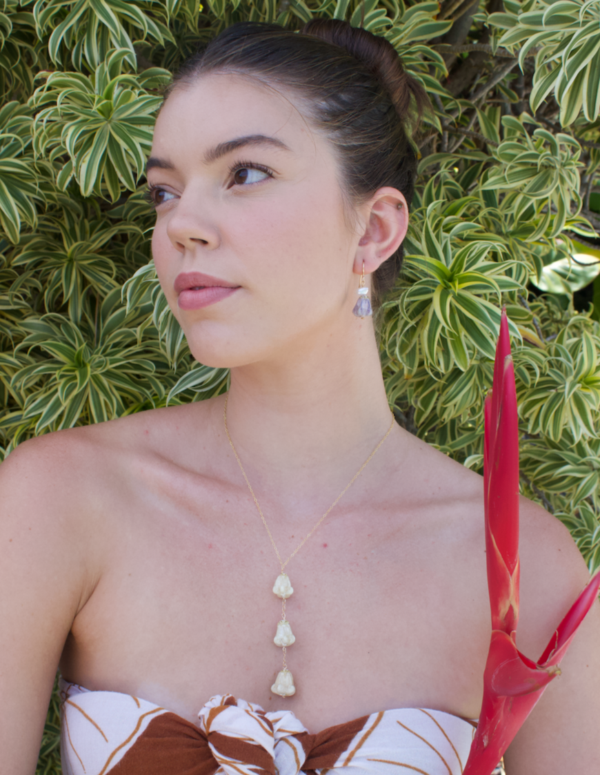 White Pua Kalaunu, crown flower, embossed in wearable resin on 16" + extender 14k gold-filled 1.5 mm chain.